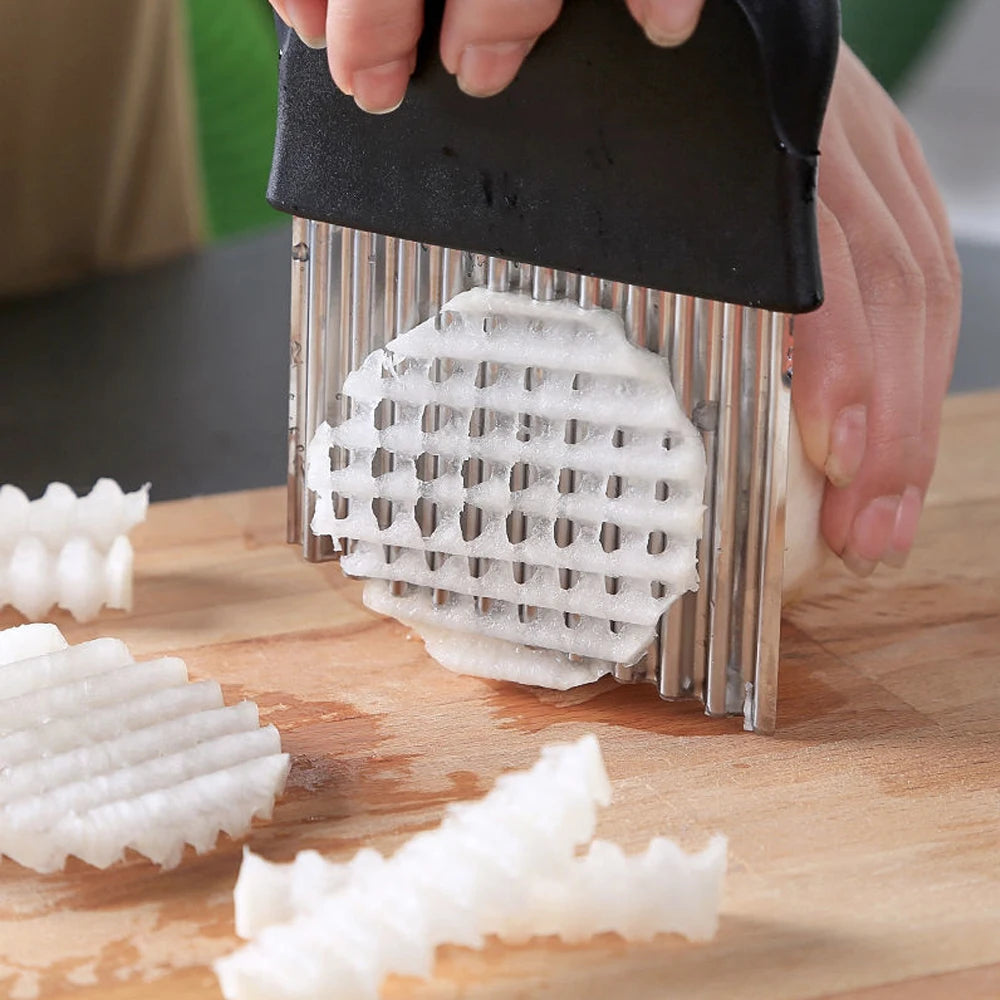 Stainless Steel Potato Chip Slicer Dough Vegetable Fruit Crinkle Wavy Kitchen Knife Cutter Chopper French Fry Maker Tools Gadget